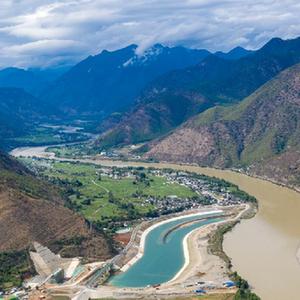 這是6月20日在麗江市石鼓鎮拍攝的金沙江景色(無人機照片)。