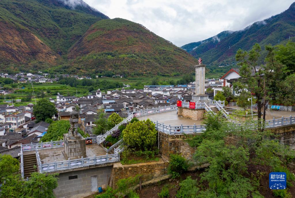 這是6月13日拍攝的麗江市石鼓鎮紅軍長征過麗江紀念館一景(無人機照片)。
