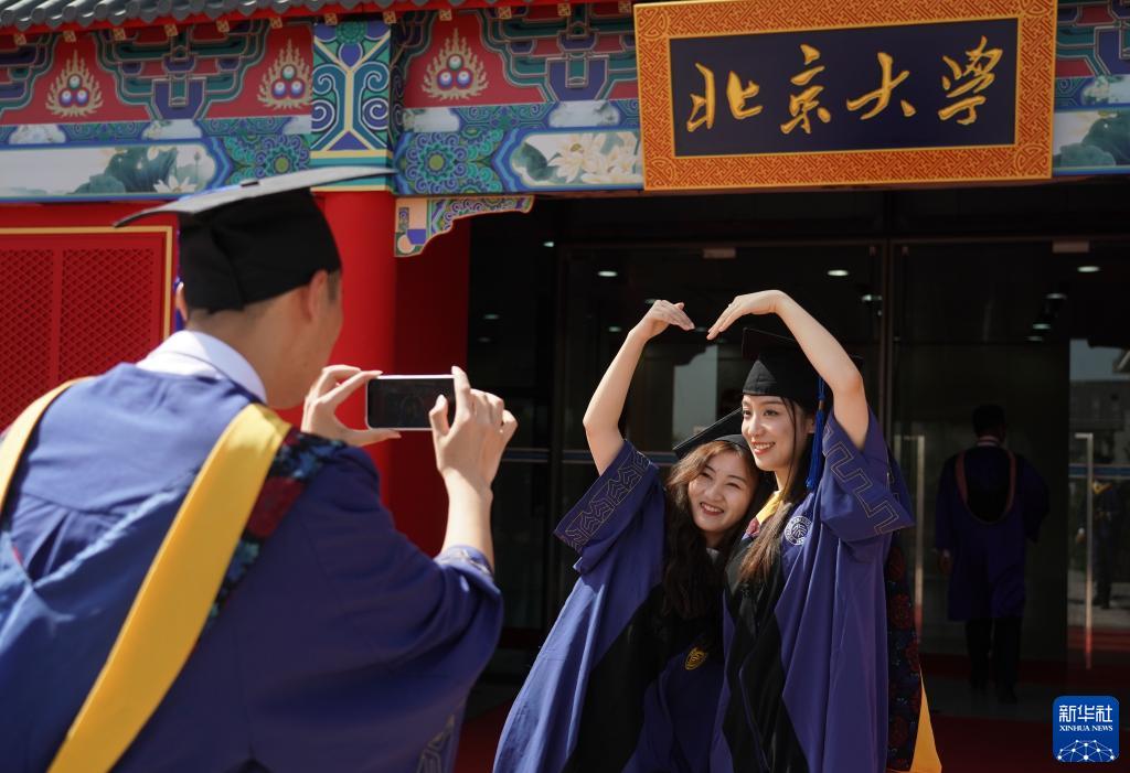 7月5日,畢業(yè)生在北京大學(xué)2023年研究生畢業(yè)典禮暨學(xué)位授予儀式結(jié)束后拍照留念。