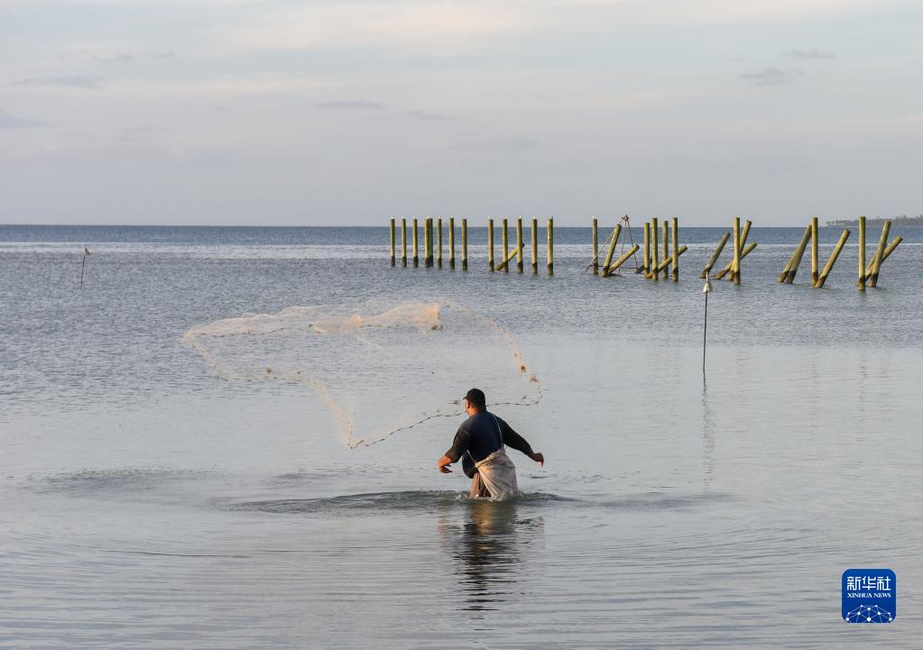 7月3日,在湯加首都努庫阿洛法,一名男子在海邊打漁。