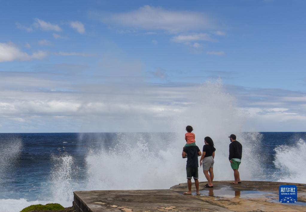 7月6日,人們在湯加首都努庫阿洛法的海岸邊觀看海浪。