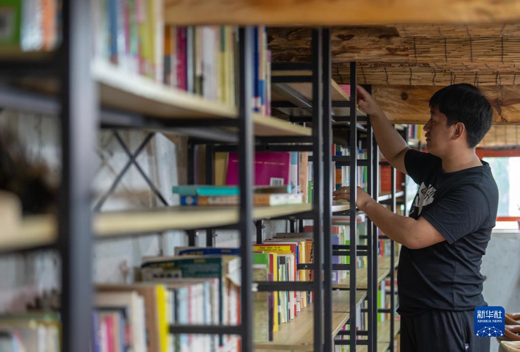 7月5日,甘文勇在“半山花語”書屋整理書籍。新華社記者 費茂華 攝