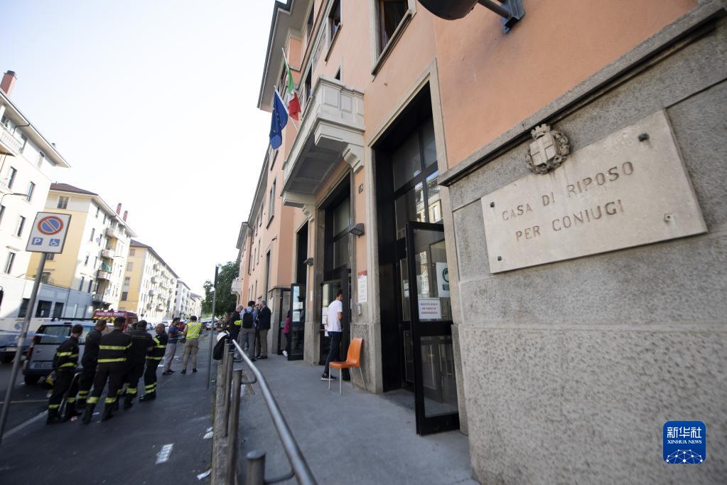 7月7日,應急人員聚集在意大利米蘭郊外發生火災的養老機構外。