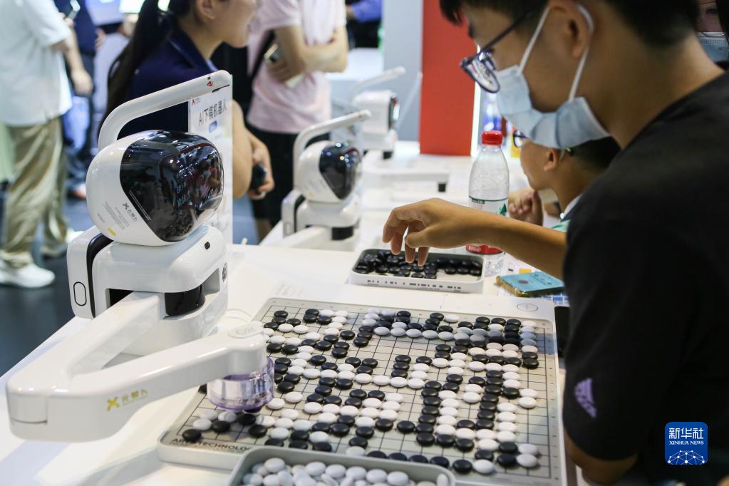 7月7日,元蘿卜AI下棋機器人與觀眾對弈。