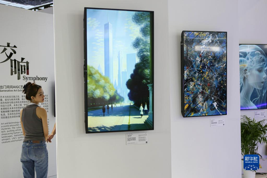 7月7日,觀眾參觀主題為“交響”的AIGC藝術展。