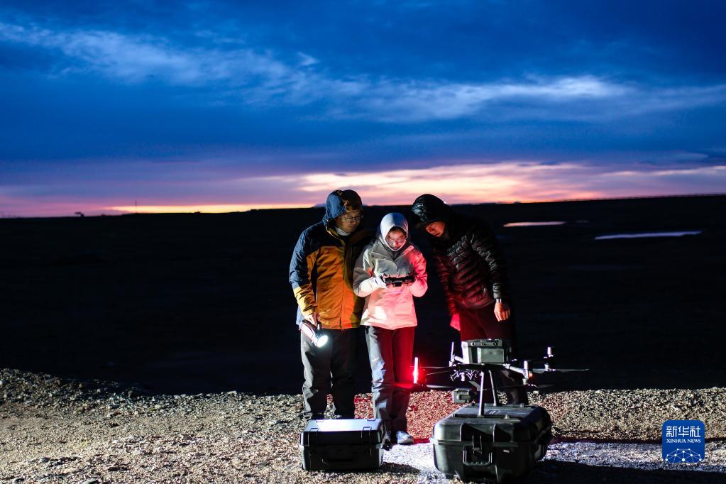 6月16日凌晨,連新明團隊在青藏公路楚瑪爾河大橋附近監測藏羚羊遷徙途中的夜宿地。