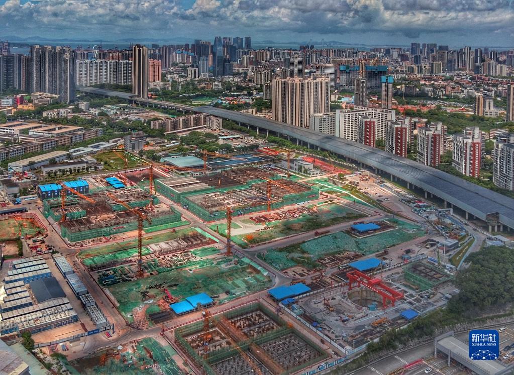 深圳南山水廠擴建工程建設現場(無人機照片,7月9日攝)。