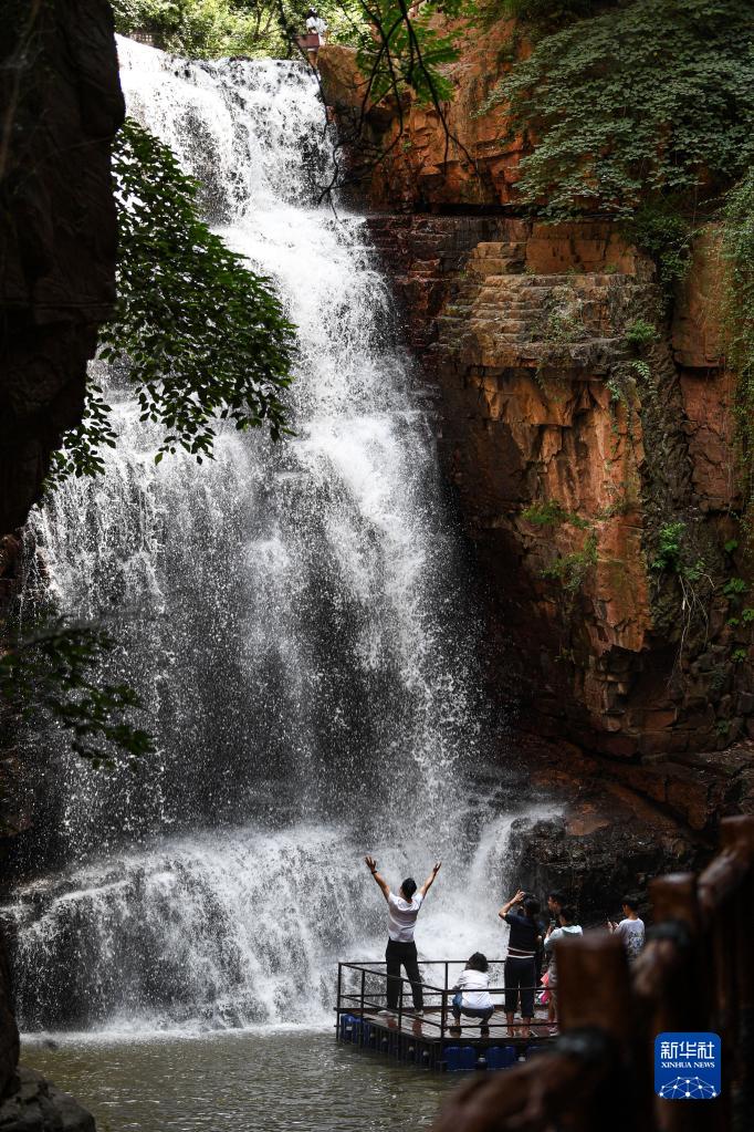 7月9日,游客在新密市伏羲山大峽谷內游玩。