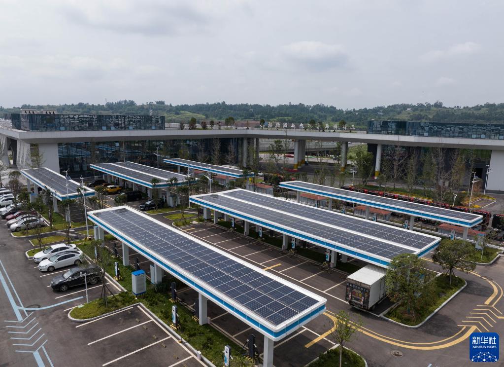 這是6月29日在四川省宜賓市三江新區東部產業園能源港拍攝的光伏雨棚(無人機照片)。
