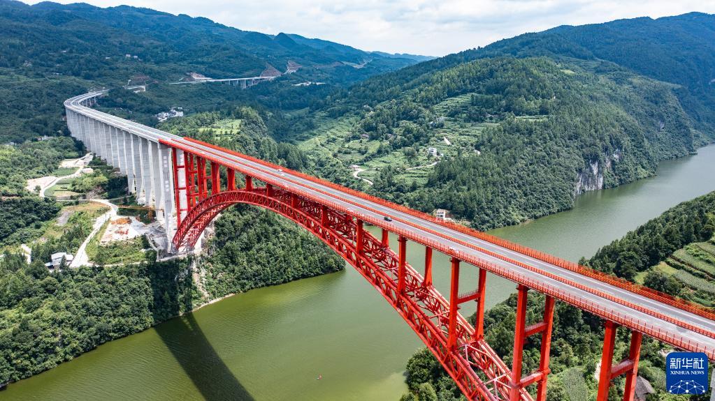 車輛行駛通過德余高速公路烏江特大橋(7月10日攝,無人機照片)。