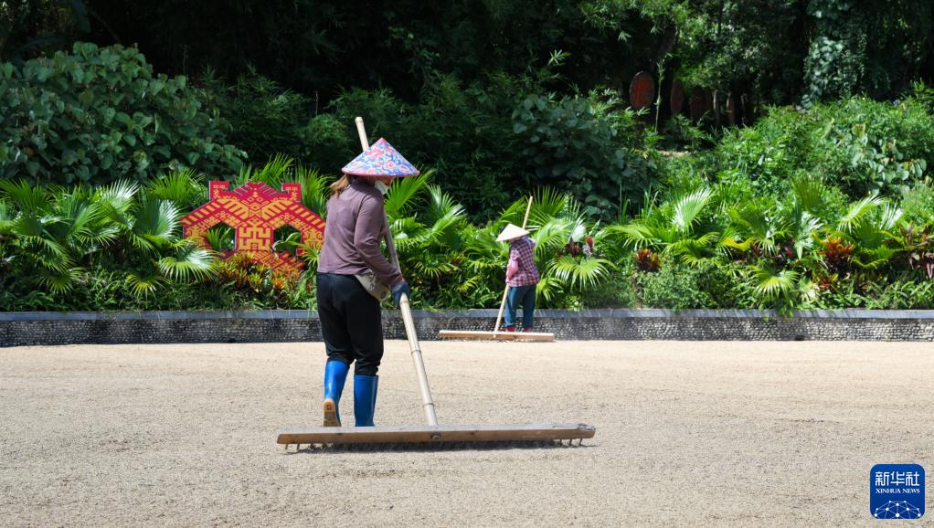 三伏將至,海南省五指山市水滿鄉(xiāng)毛納村村民搶抓農(nóng)時(shí)晾曬稻谷,田間地頭一派繁忙。