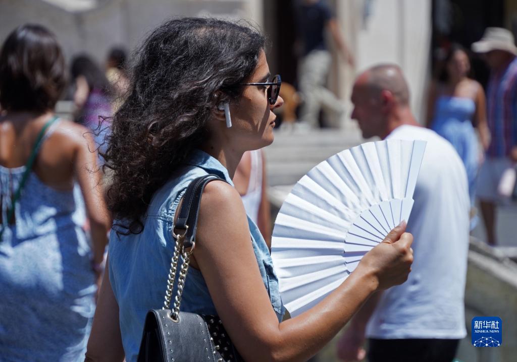 7月10日,一名女子在意大利羅馬街頭扇扇子降溫。