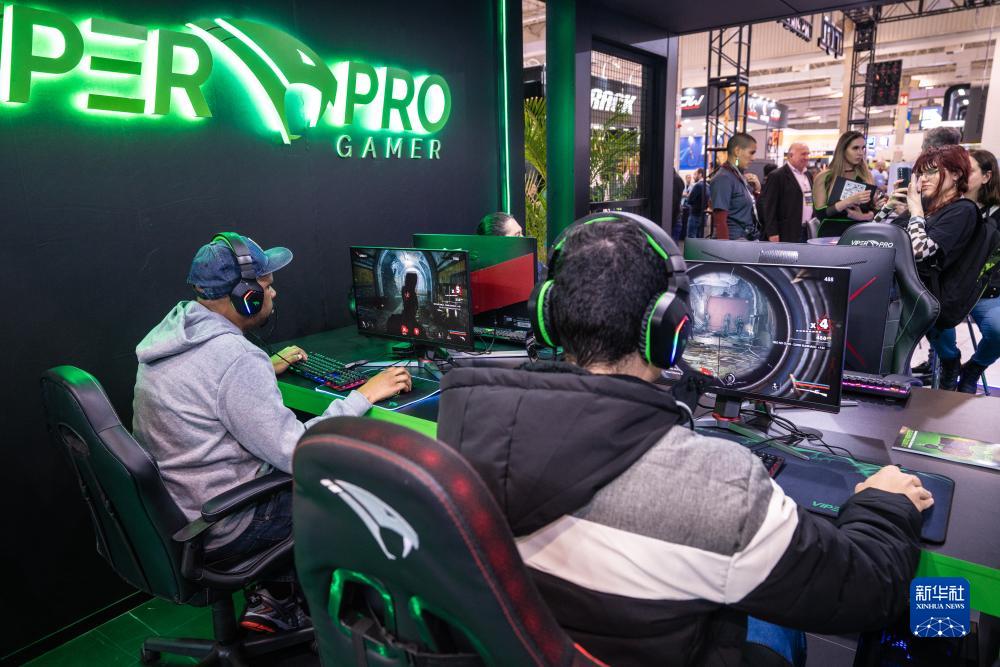 7月10日,在巴西圣保羅舉行的國際消費類電子及家用電器產品展覽會上,參觀者體驗電子游戲設備。