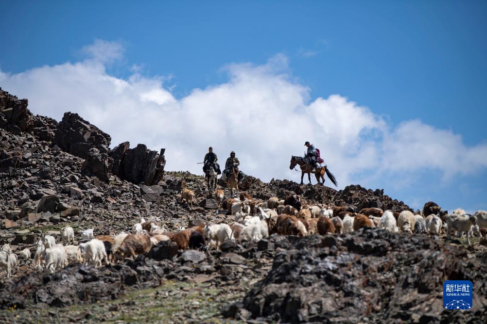 轉(zhuǎn)場隊伍翻越一處山坡,向夏牧場前進(7月4日攝)。