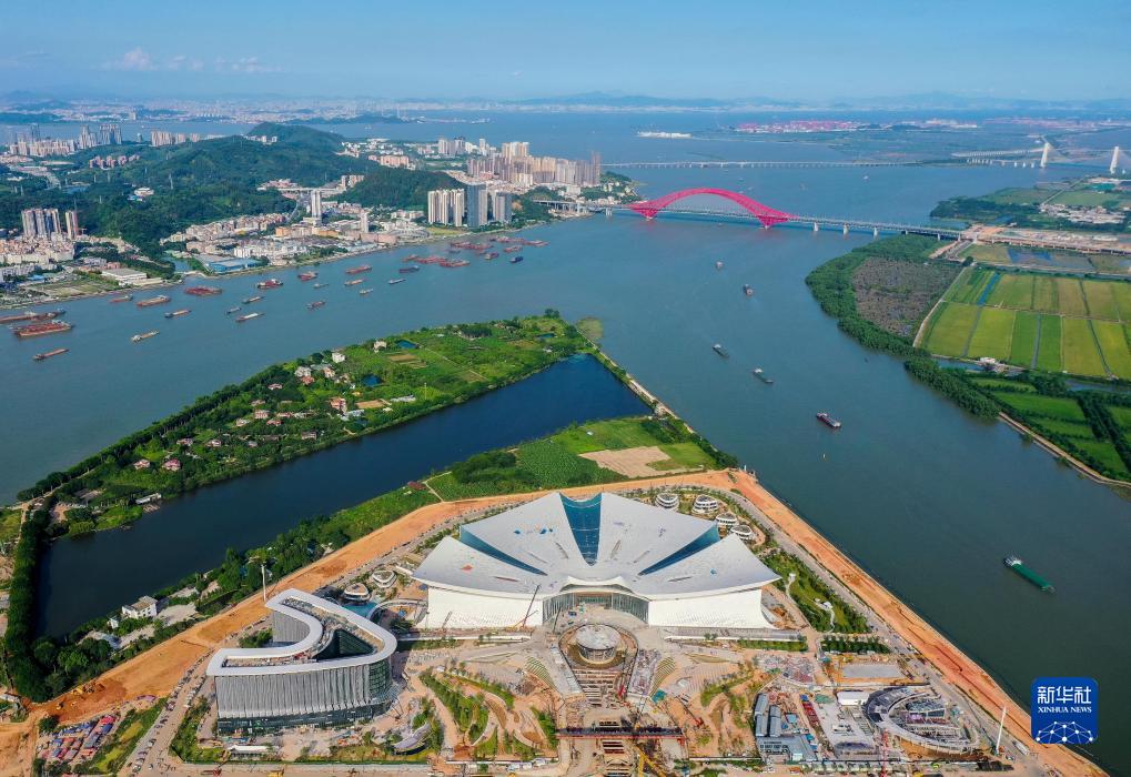 空中俯瞰位于廣州市南沙新區(qū)橫瀝島尖的國(guó)際金融論壇(IFF)永久會(huì)址,宛如迎風(fēng)綻放的木棉花(無(wú)人機(jī)照片,7月10日攝)。
