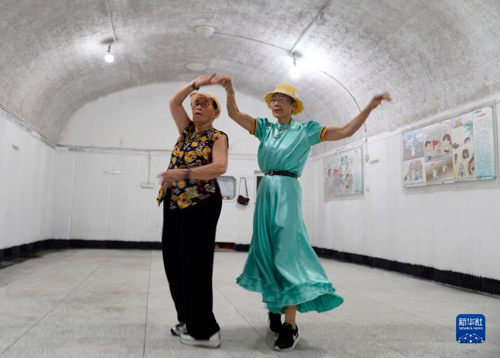 7月11日,杭州市民在四牌樓防空洞內跳舞。