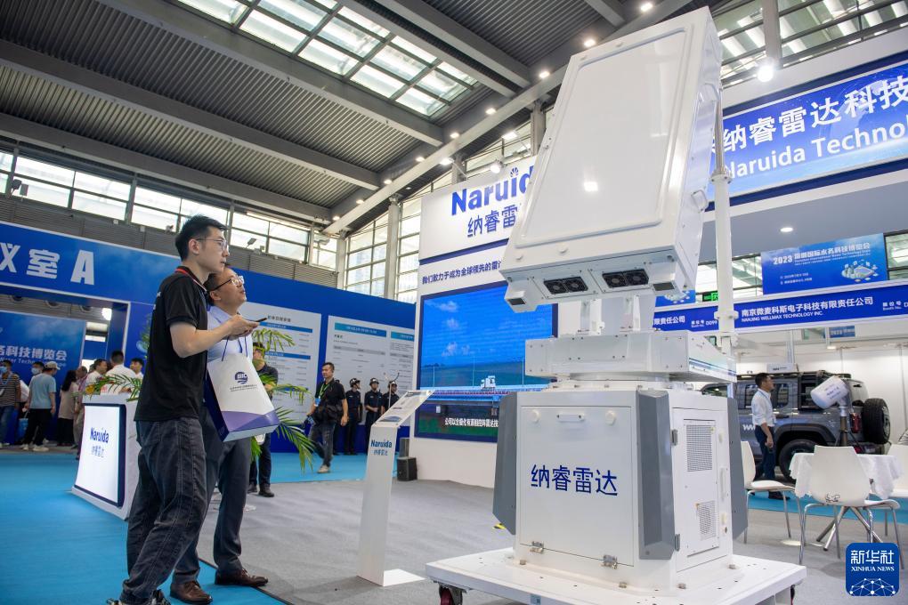 7月11日,參觀者在2023深圳國際水務科技博覽會了解一款測雨雷達。