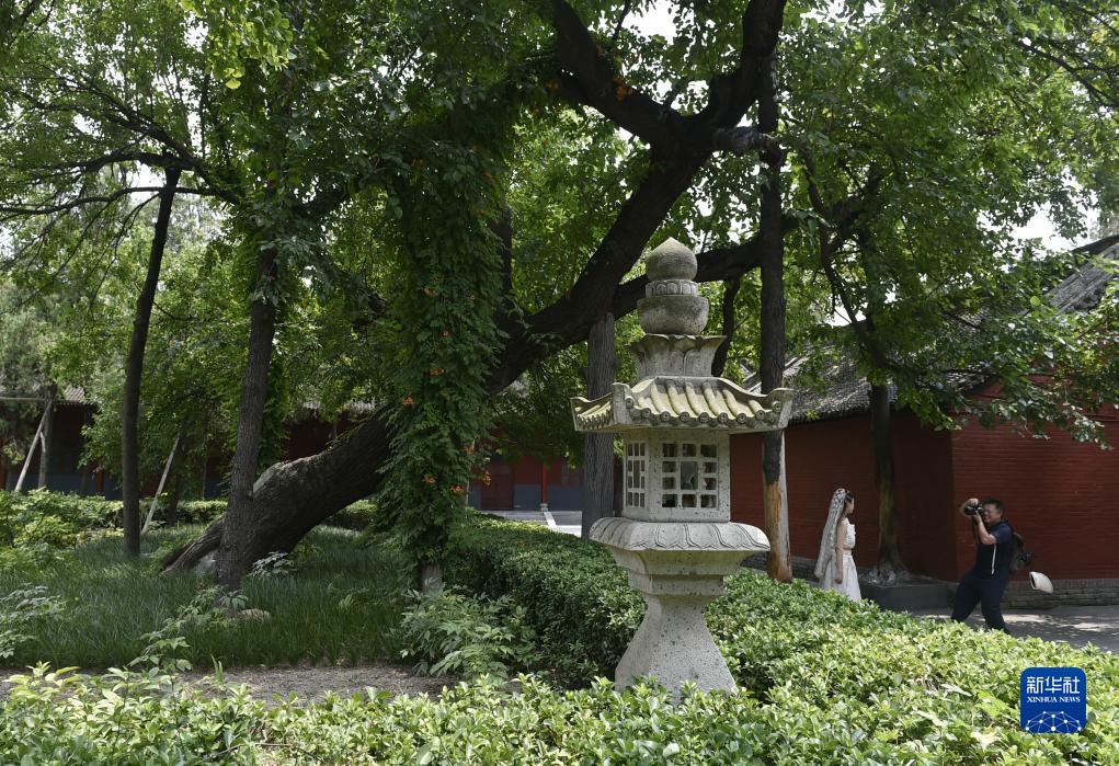 7月11日,游人在洛陽市白馬寺景區(qū)游覽拍照。