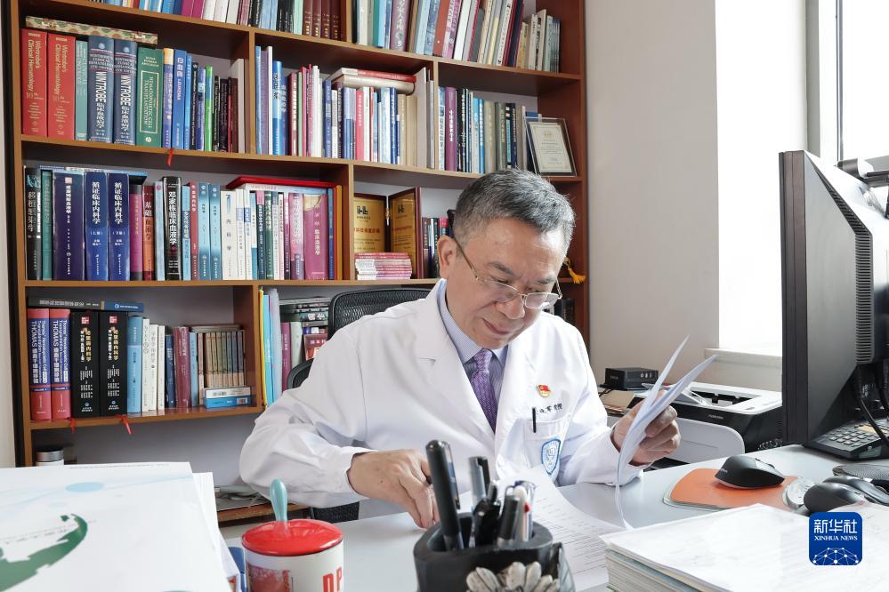 7月3日,黃曉軍在北京大學人民醫院辦公室內工作。