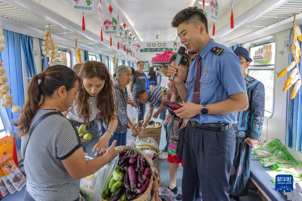 暑運以來,中國鐵路成都局集團有限公司重慶客運段在貴州往返重慶的5630/5629次普速列車上打造主題文化車廂,增設“列車集市”和非遺大舞臺,在助農增收的同時,滿足旅客暑期多元化出行需求。旅客乘坐該趟列車,不僅可欣賞沿途各地的風景,還能在列車上逛“集市”、看非遺表演,體驗別樣旅途時光。