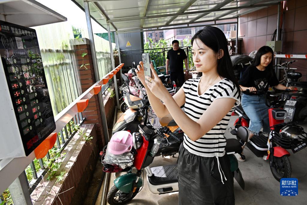 2022年以來,山東青島膠州市在城市更新和城市建設中,著眼于破解居民小區(qū)電動自行車數(shù)量多、樓道內(nèi)亂停亂放、飛線充電等問題,探索建立電動自行車集中充電長效機制,在全市陸續(xù)建設900個電動自行車集中充電點(棚),既為居民提供了便利,也保障了群眾人身和財產(chǎn)安全。新華社記者 李紫恒 攝