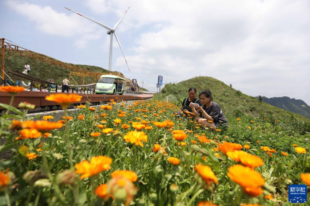 7月11日,游客在貴州省遵義市播州區洪關太陽坪景區游玩。