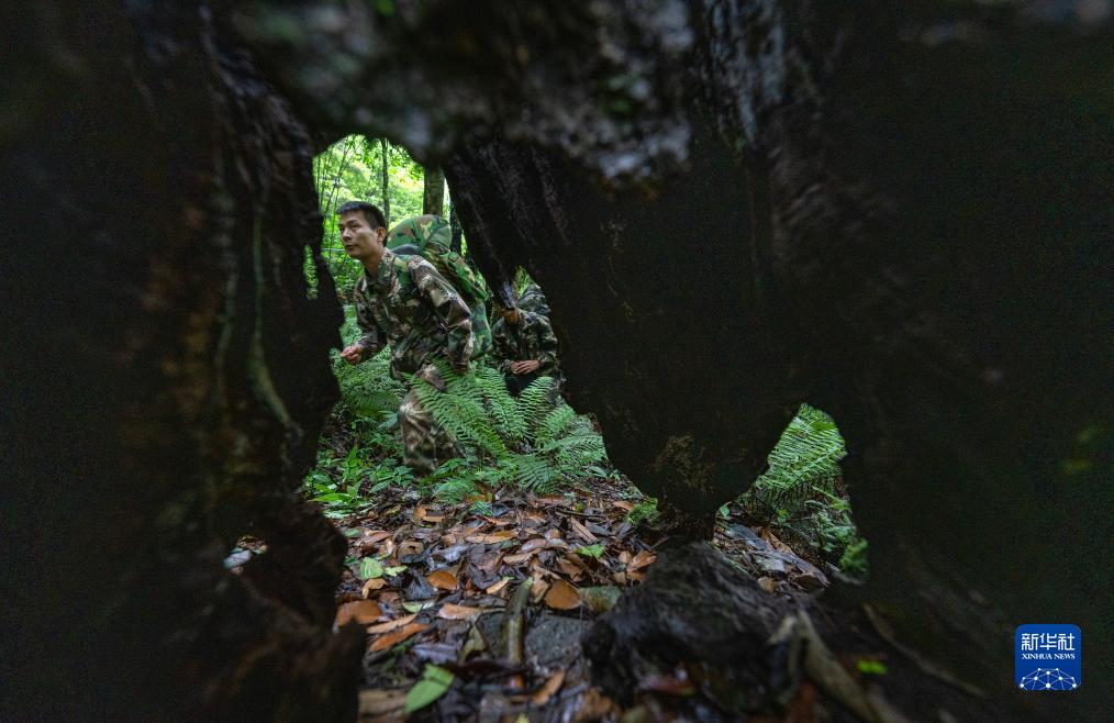 7月8日,巡護隊員在高黎貢山國家級自然保護區中行進。新華社記者 費茂華 攝