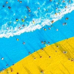 當(dāng)日是入伏第一天,人們來到海邊、泳池和水上樂園戲水消暑,暢享清涼。