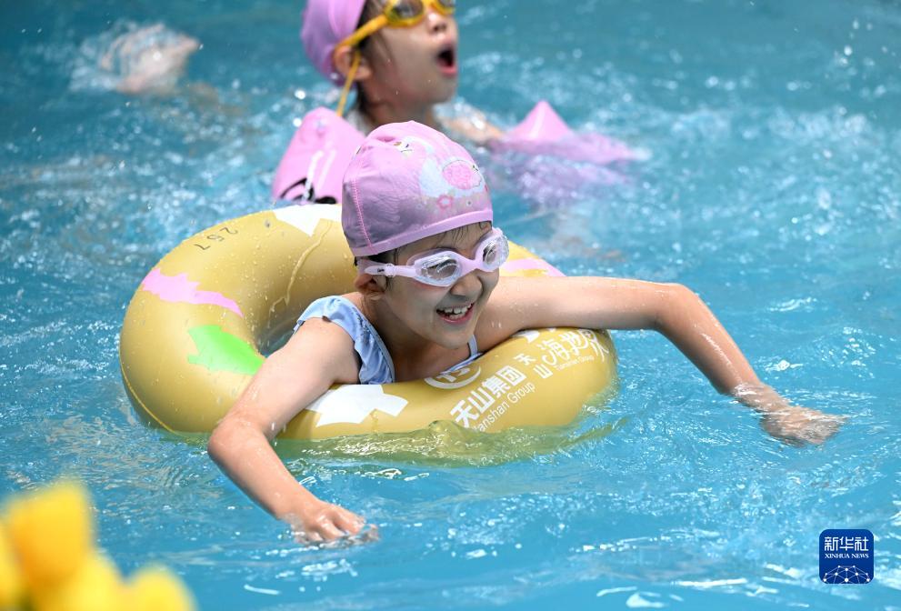 7月11日,小朋友在河北省石家莊市高新區(qū)一家戲水樂(lè)園游泳。