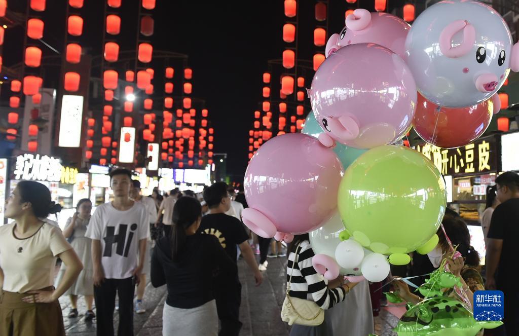 這是7月11日晚拍攝的洛陽十字街小吃一條街夜景。