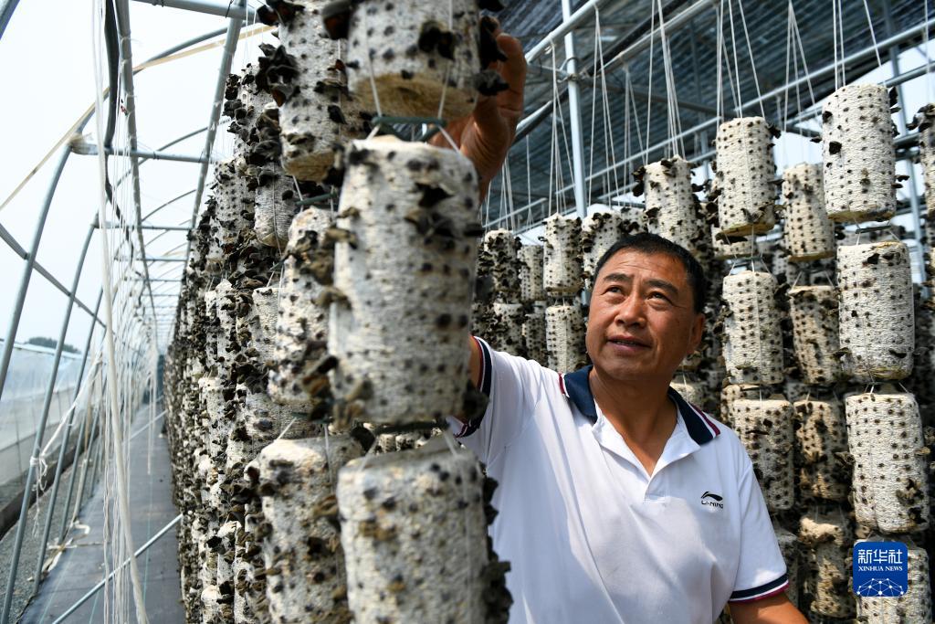 7月11日,在內(nèi)蒙古扎蘭屯市扎蘭屯黑木耳產(chǎn)業(yè)孵化園區(qū)內(nèi),工作人員在采摘黑木耳。