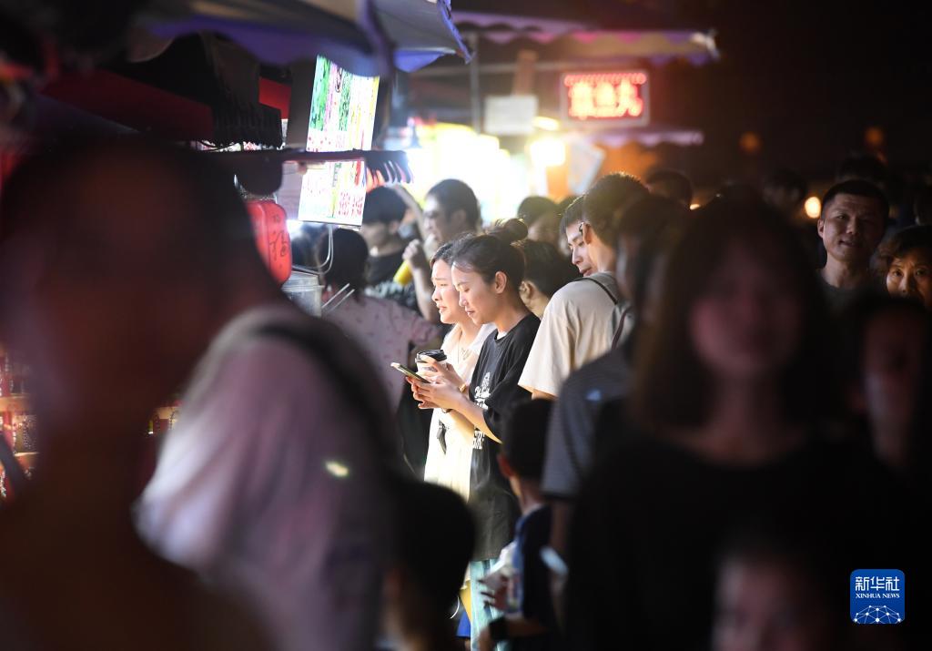 眼下正值暑期,廣西南寧市外出活動的市民絡(luò)繹不絕,城區(qū)內(nèi)夜市購物消費旺盛,催熱當(dāng)?shù)亍耙菇?jīng)濟(jì)”。