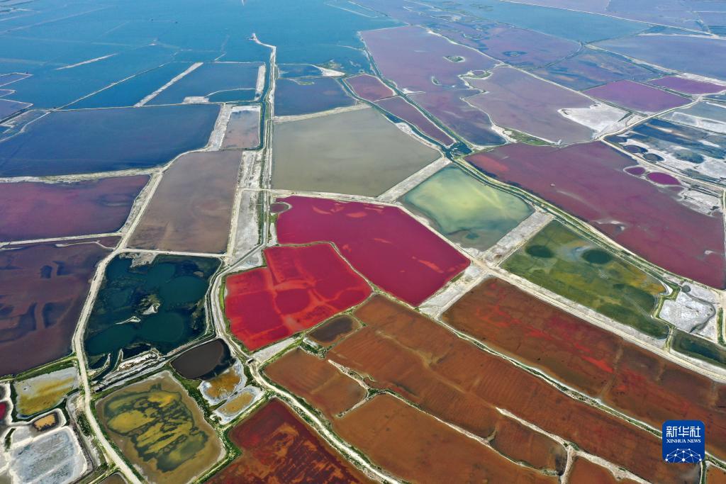 這是無(wú)人機(jī)拍攝的運(yùn)城鹽湖(7月11日攝)。