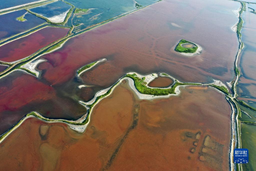 運城鹽湖一角(無人機照片,7月11日攝)。
