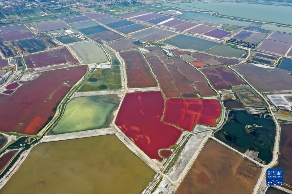 運城鹽湖一角(無人機照片,7月11日攝)。