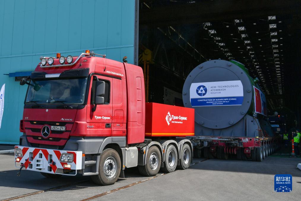 7月11日,在俄羅斯南部羅斯托夫州伏爾加頓斯克市,徐大堡核電站3號機組關鍵設備起運。