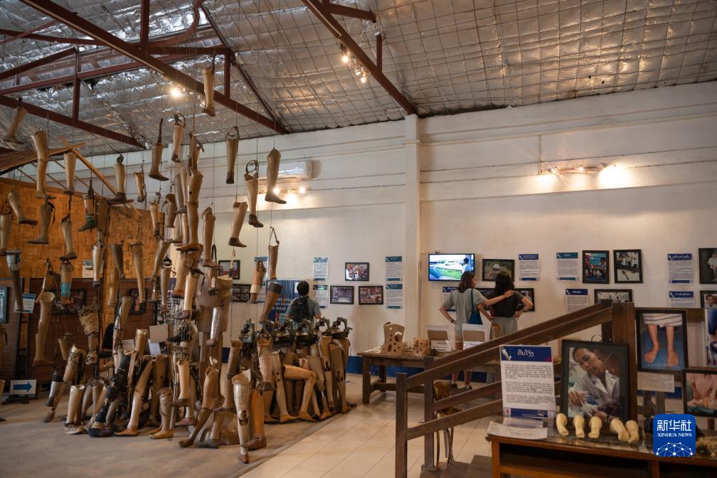 這是7月11日在老撾首都萬象“義肢與矯形合作事業(yè)”展館拍攝的老撾未爆彈受害者康復服務展。