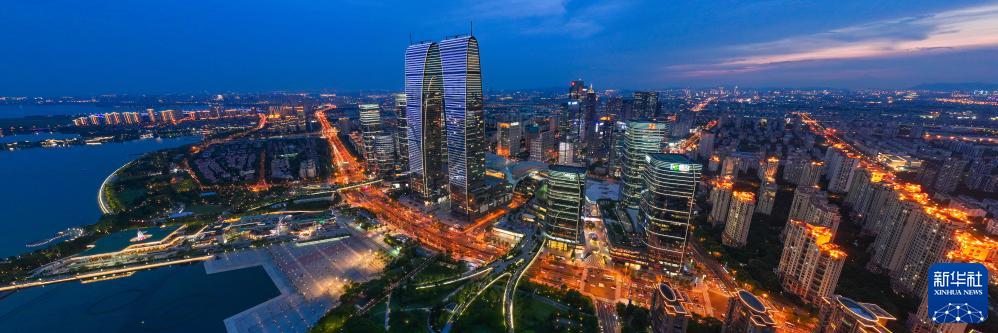 蘇州工業(yè)園區(qū)夜景(無(wú)人機(jī)照片,7月3日攝)。