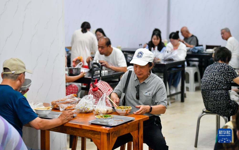 7月10日,人們在天津西北角的一家早點鋪吃早點。