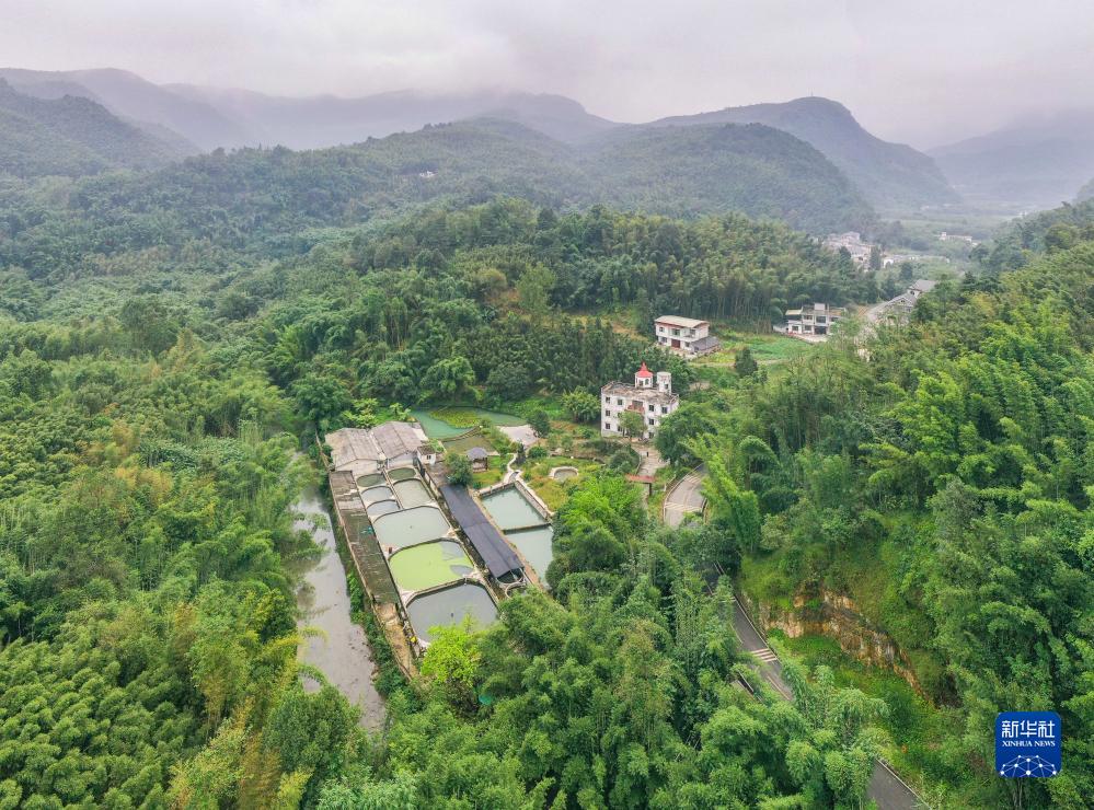 這是最初周亮與父親一起創辦的宜賓珍稀水生動物研究所富興繁育基地(2021年10月12日攝,無人機照片)。新華社記者 王曦 攝