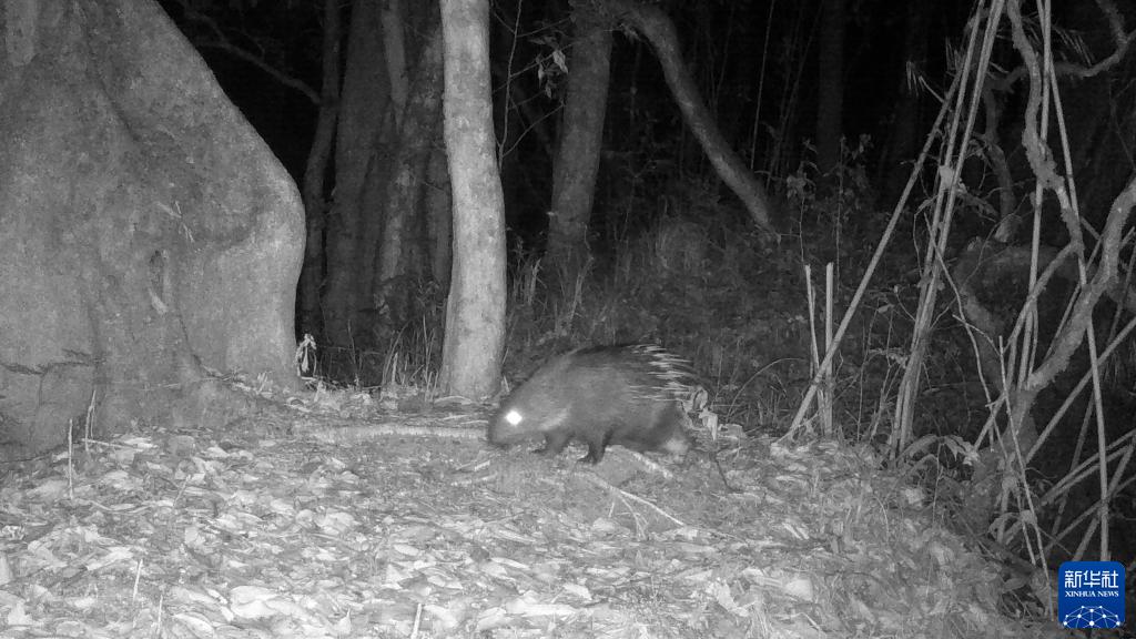 這是在高黎貢山國家級自然保護(hù)區(qū)用紅外相機(jī)拍攝到的豪豬(2022年3月25日攝)。