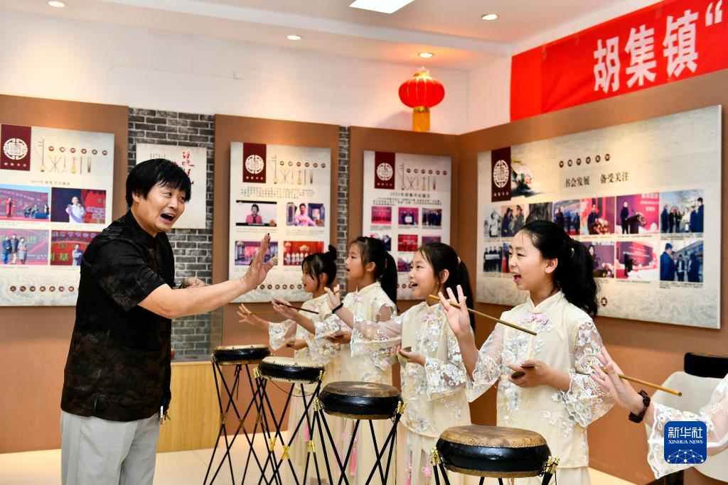 7月13日,在惠民縣胡集鎮(zhèn)一處“濱濱學(xué)堂”,公益講師馮增奎教孩子們西河大鼓。