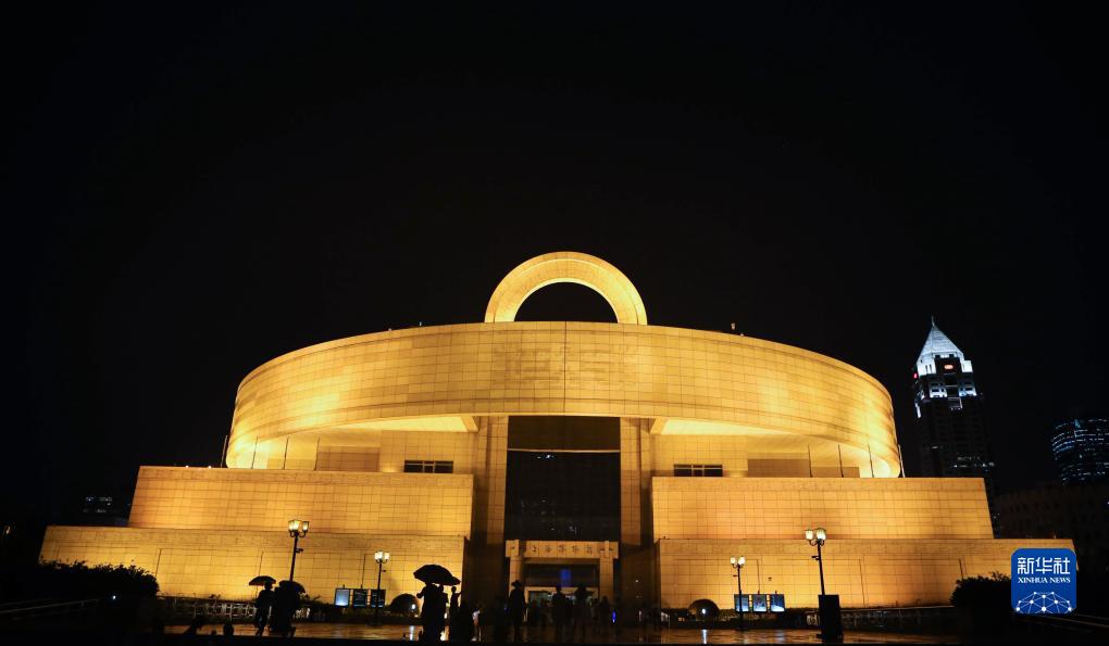 這是7月14日晚拍攝的上海博物館外景。