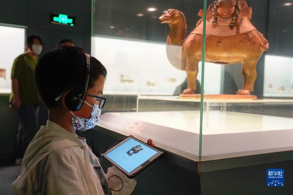 7月14日晚,小朋友在上海博物館的中國古代陶瓷館了解彩色釉陶駱駝。