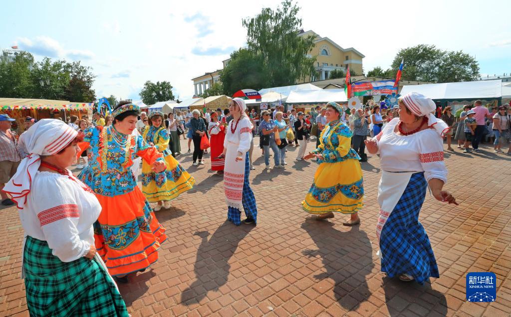 7月14日,演員在白俄羅斯維捷布斯克“斯拉夫巴扎”國際藝術節上表演民族舞蹈。