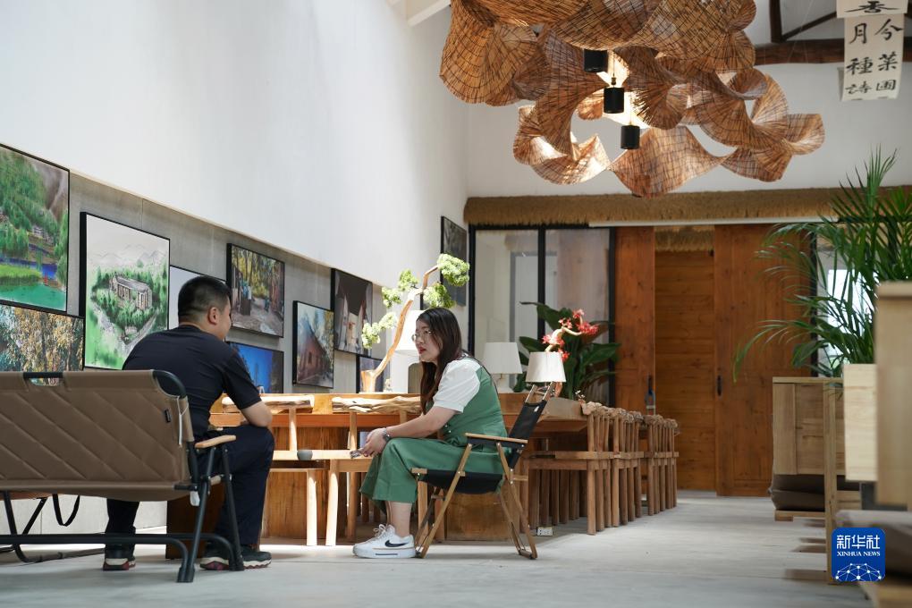 7月14日,游人在周至縣駱峪鎮(zhèn)紅旗村的鄉(xiāng)村會(huì)客廳內(nèi)休息。