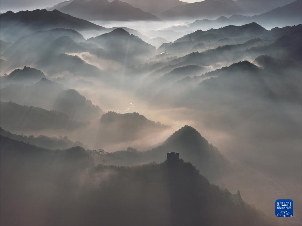 這是7月9日清晨拍攝的河北省遷西縣榆木嶺長城景色(無人機照片)。