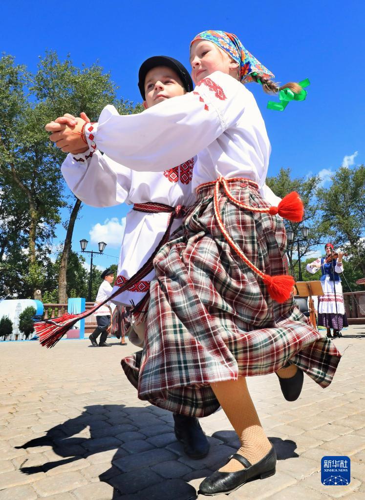 當日,一場民族舞蹈比賽在白俄羅斯維捷布斯克舉行。新華社發(任科夫攝)