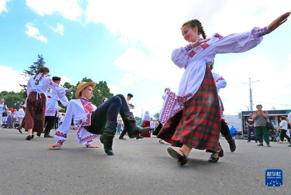 當日,一場民族舞蹈比賽在白俄羅斯維捷布斯克舉行。新華社發(任科夫攝)