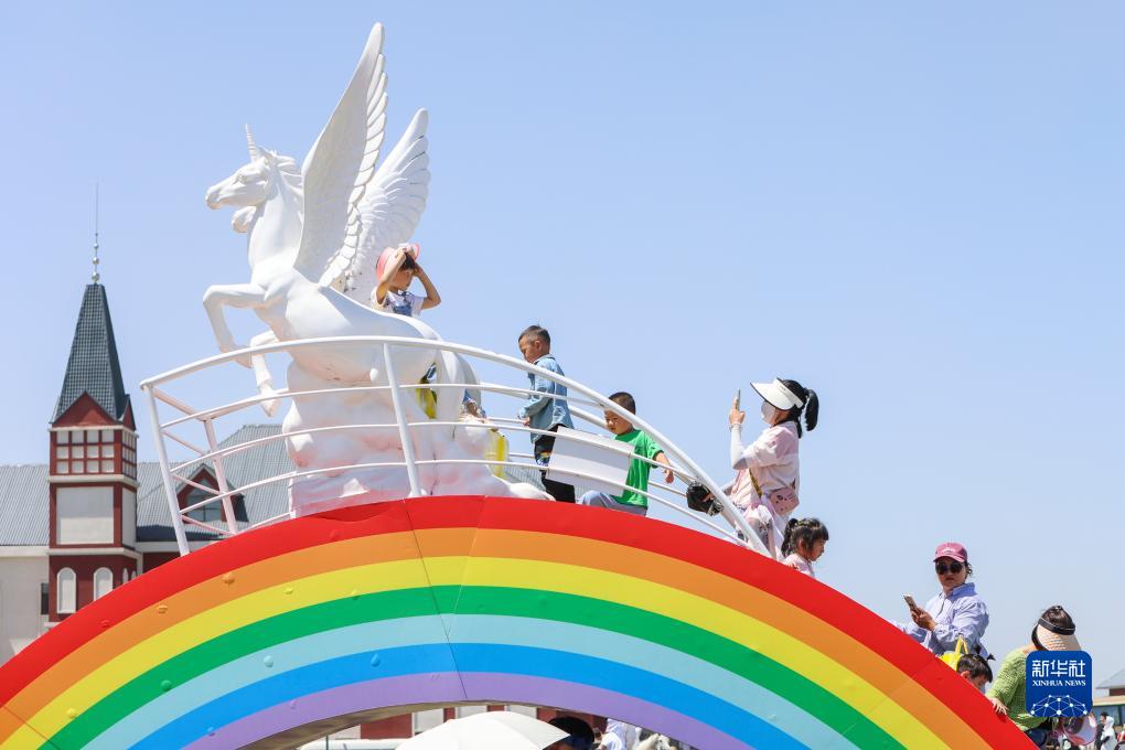 7月16日,游客在昭蘇縣天馬旅游文化園游玩。